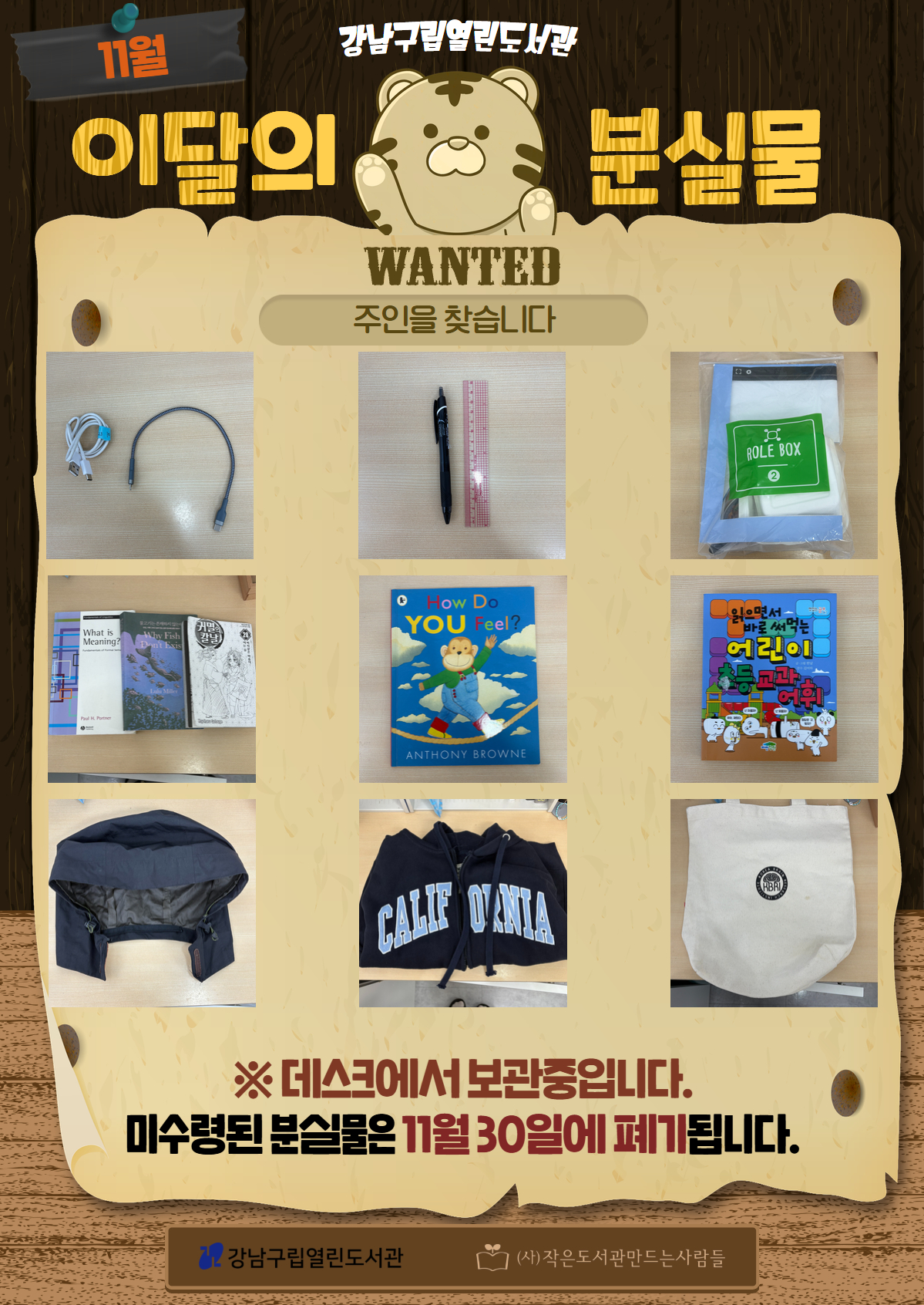<열린도서관 11월 분실물 안내>