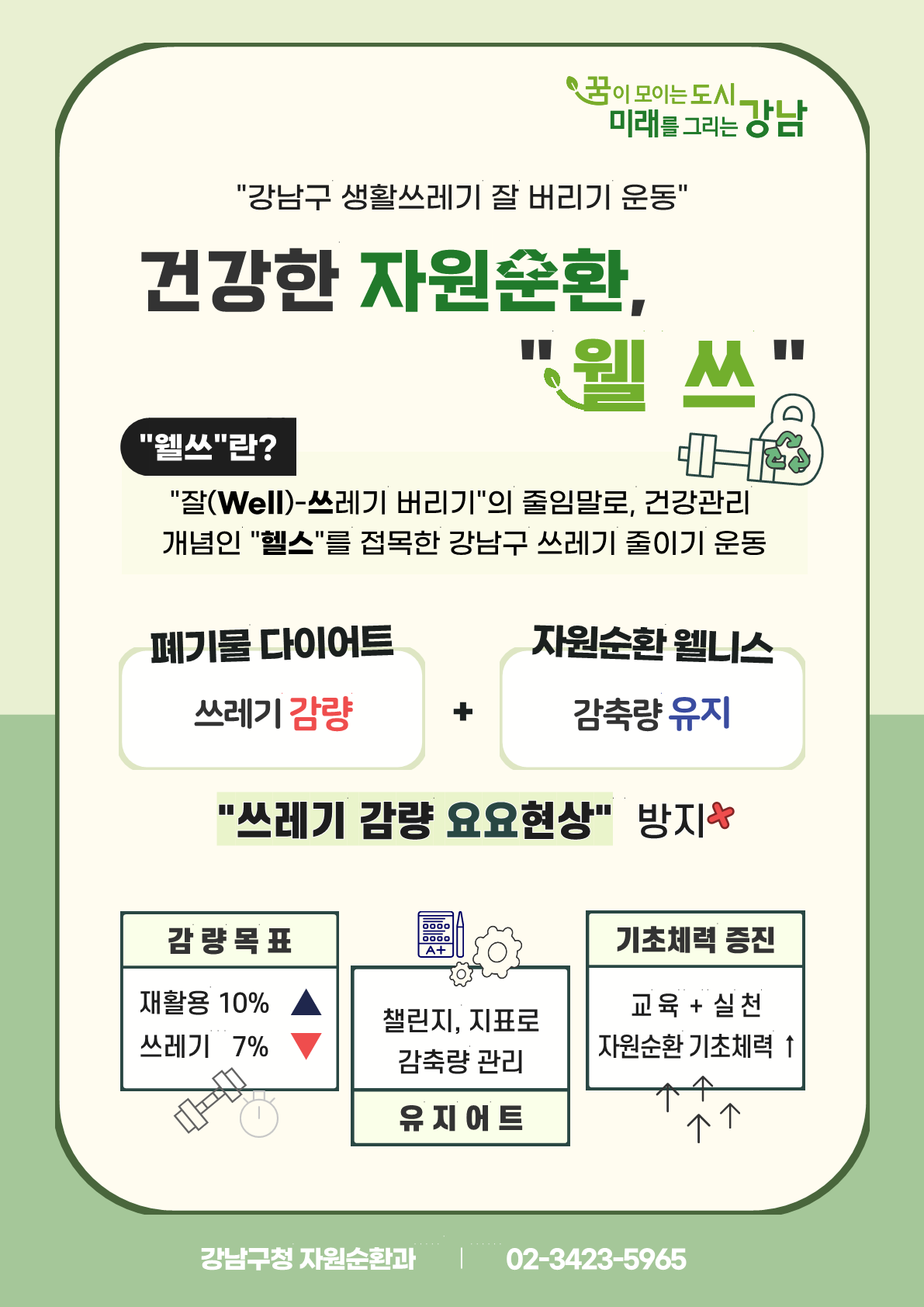 | 제목 | 강남구 생활쓰레기 잘 버리기 운동 <건강한 자원순환, "웰쓰"> 캠페인 안내 |